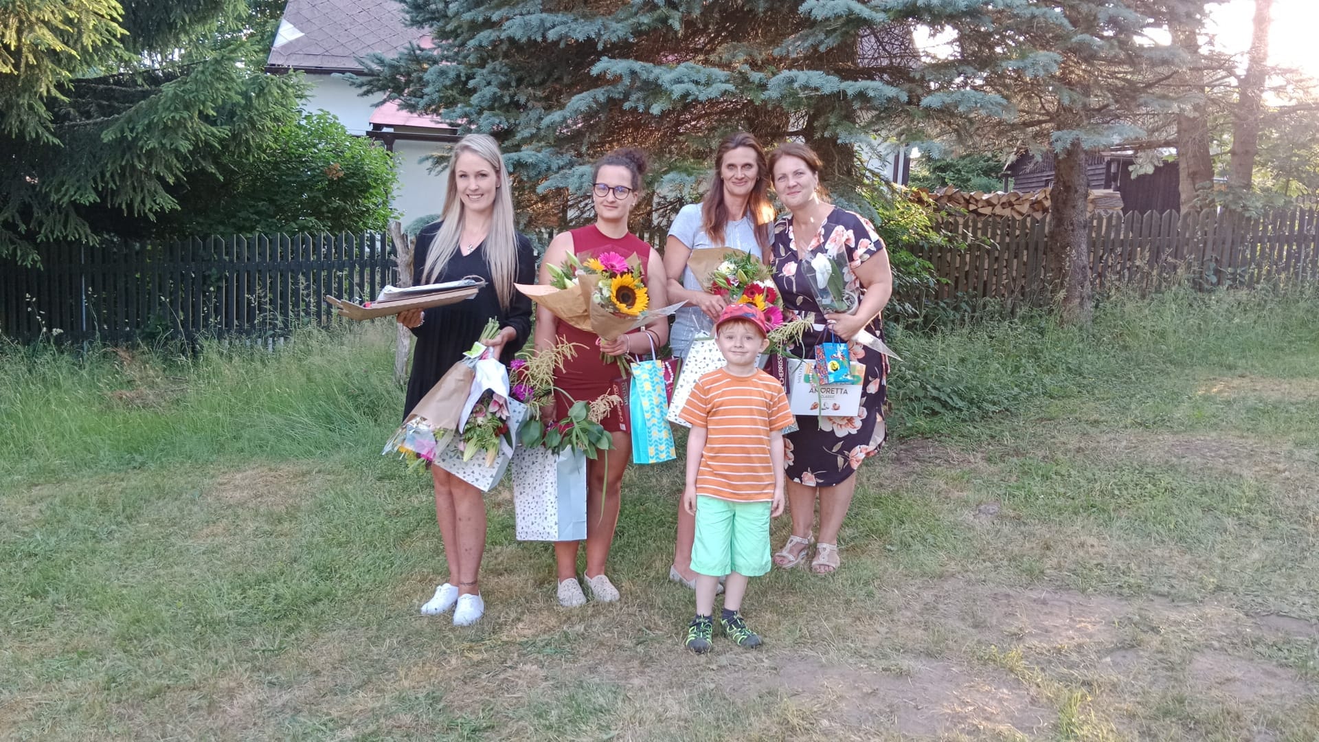 Ve čtvrtek dne 30.6.2023 jsme jako každý rok uspořádali zahradní slavnosti, při kterých jsme se loučili jak s celým školním rokem, tak i našimi předškoláky. Celé odpoledne se náramně vydařilo, jelikož nám počasí přálo a sešlo se nás opravdu hodně. Vystoupení dětí se velice líbilo, děti byly opravdu šikovné a nám i svým rodičům udělaly obrovskou radost. Jen málokdo se udržel, aby mu neukápla slzička... Předškoláci byli ošerpováni a domů si odnesli krásné upomínkové dárečky. Nechybělo ani opékání buřtíků,spousta zábavy,dobrého jídla a pití :-)