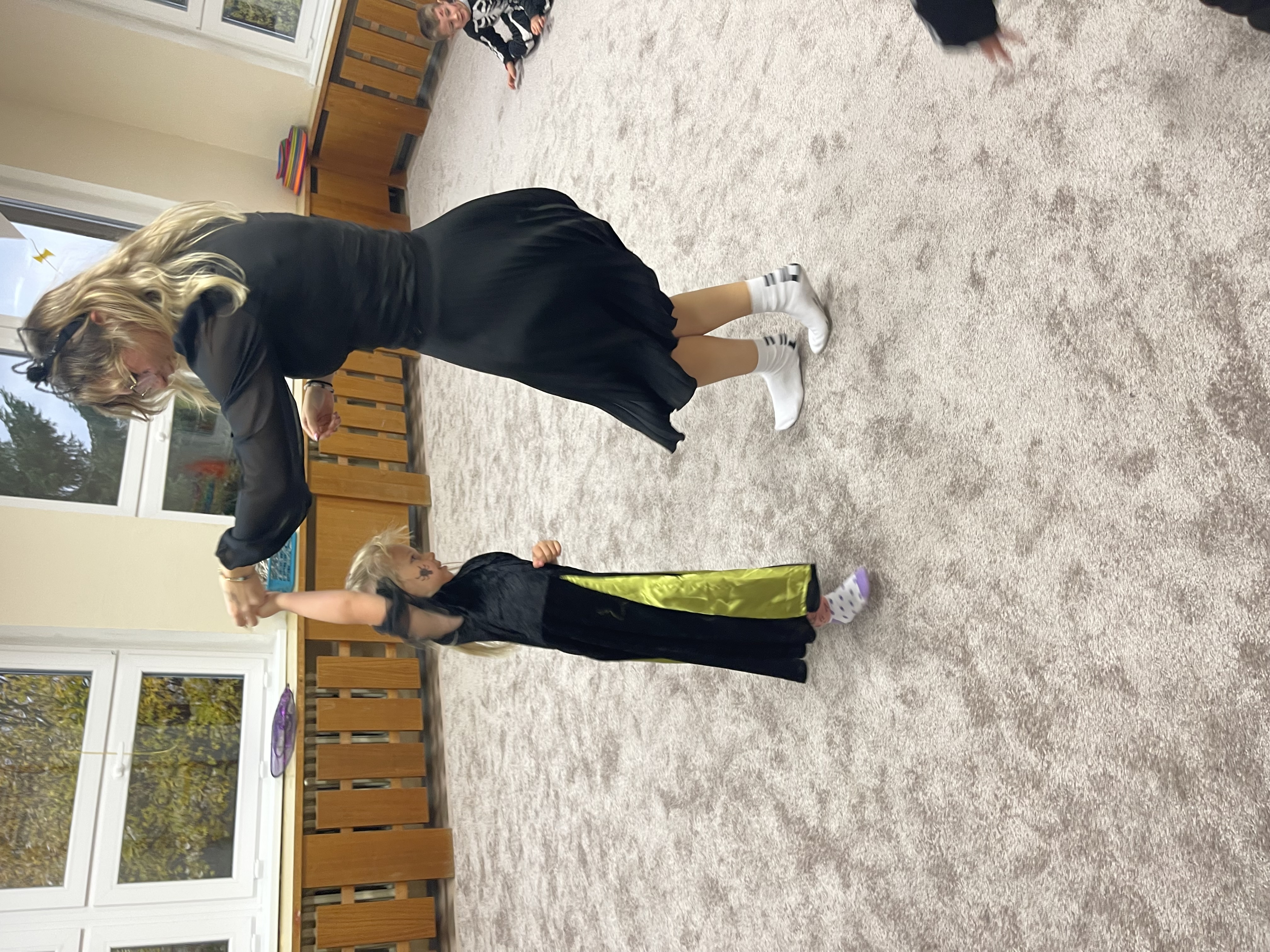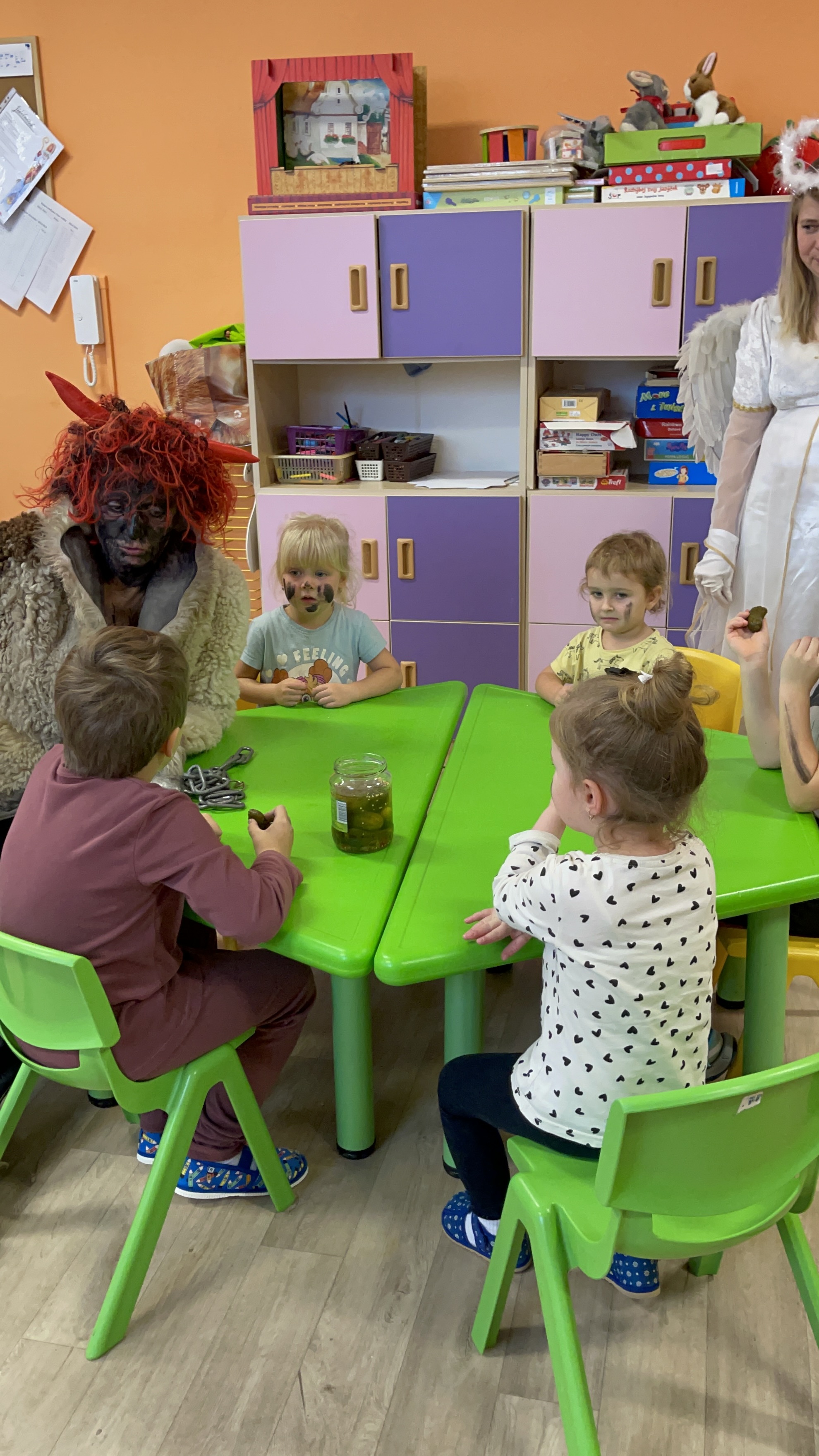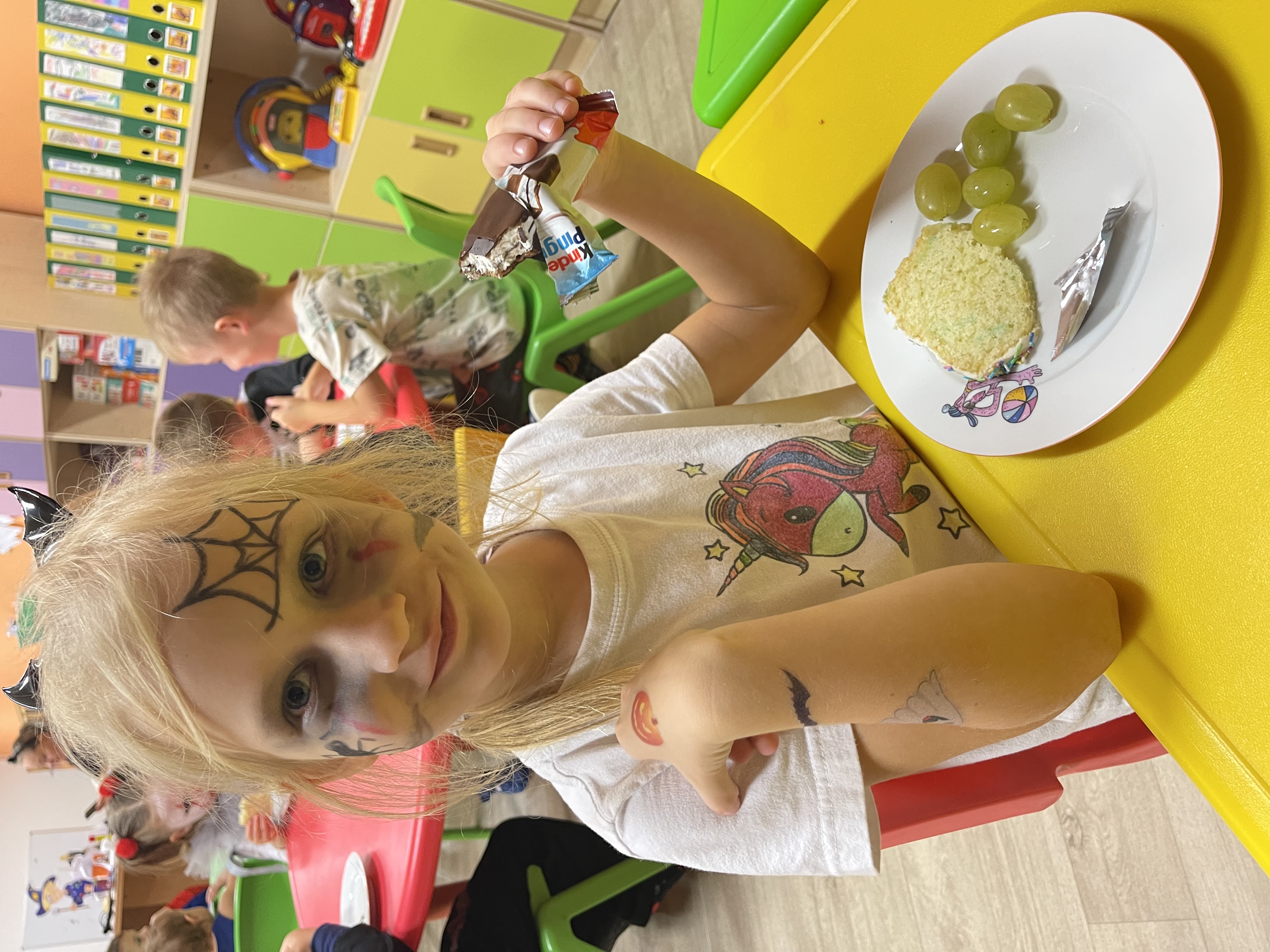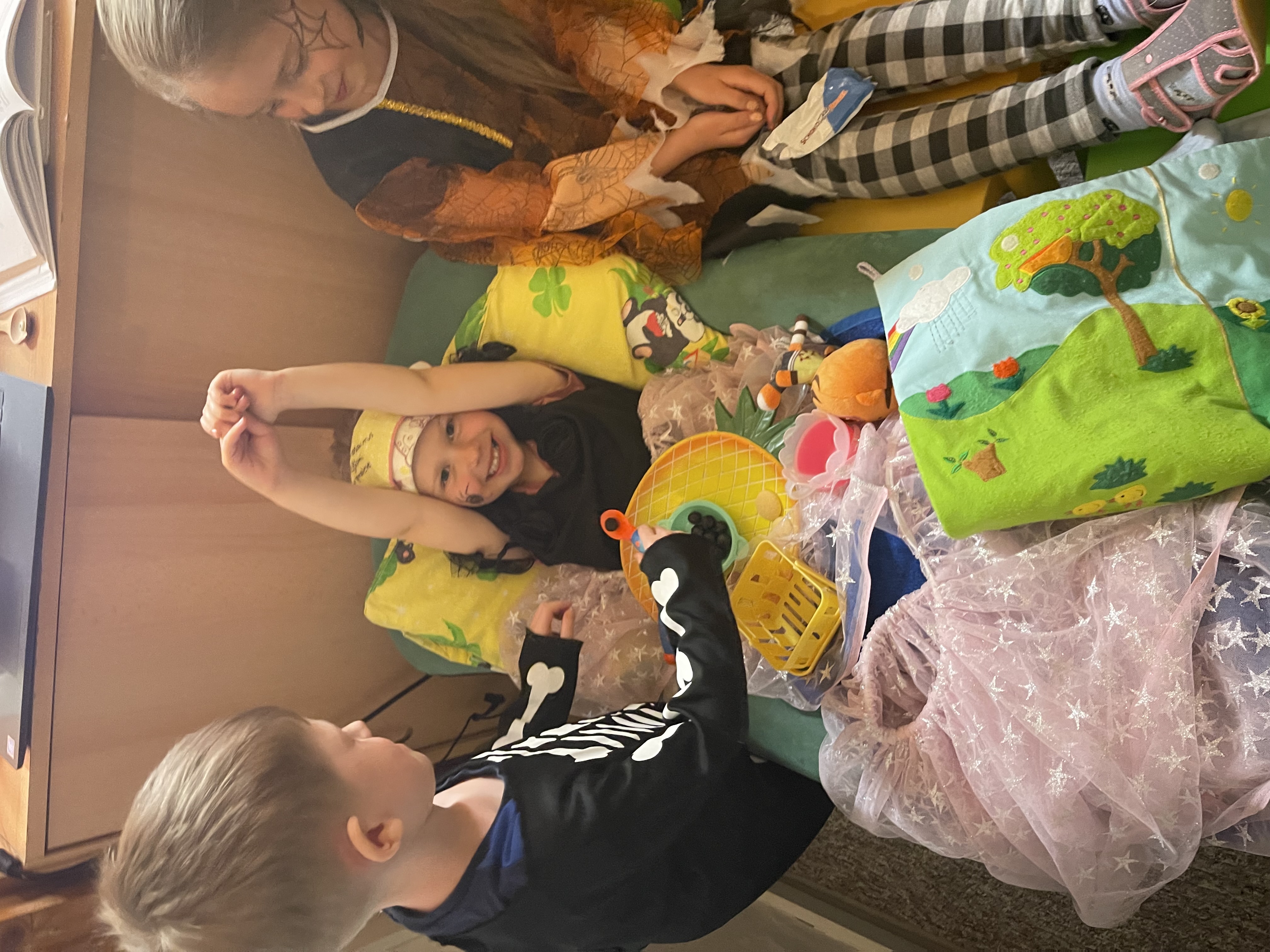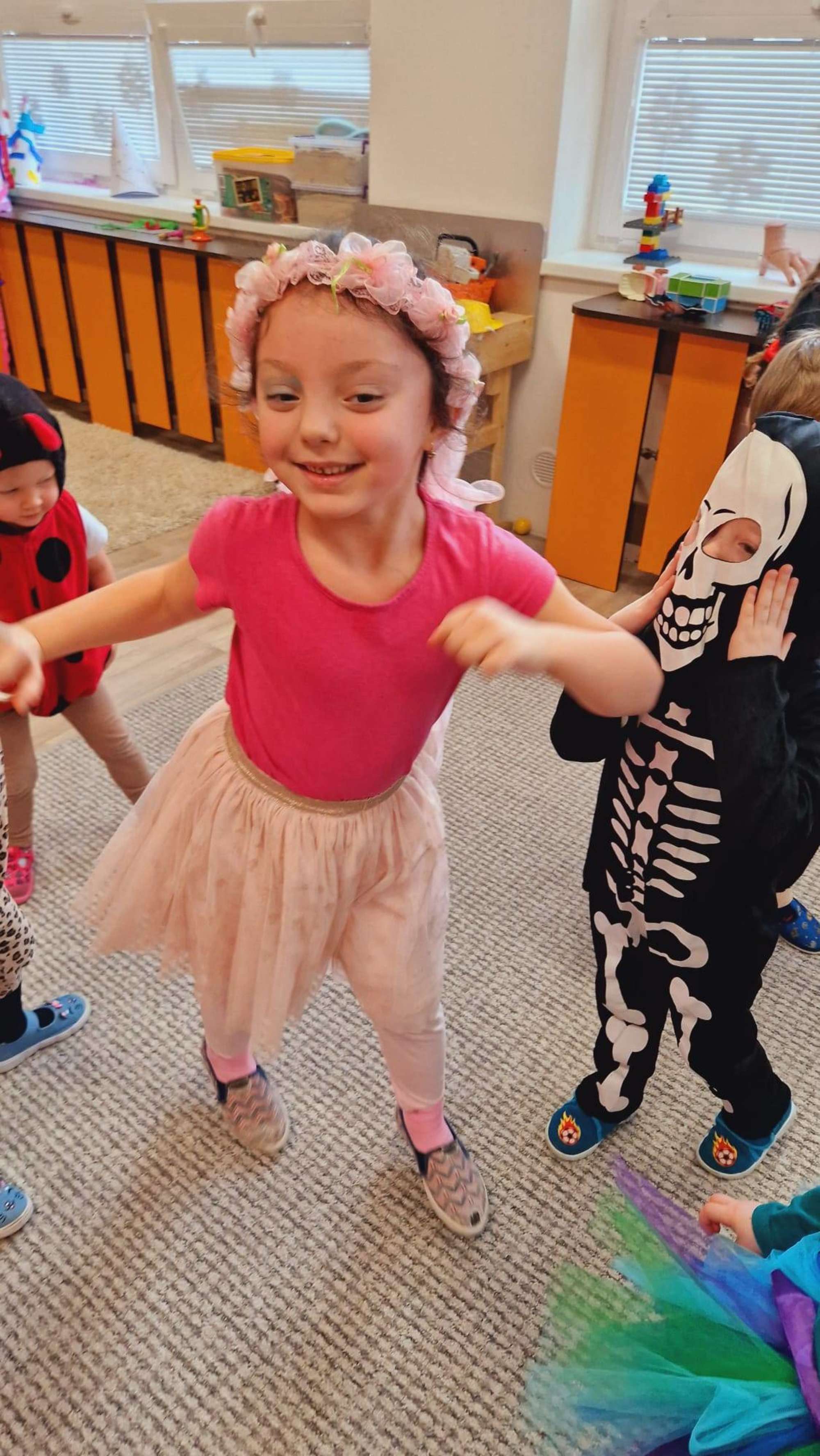 děti si donesli kostýmy a nějaké dobrůtky a společně jsme strávili noc ve školce,kde jsme si hráli ,tancovali a užívaly si dne.