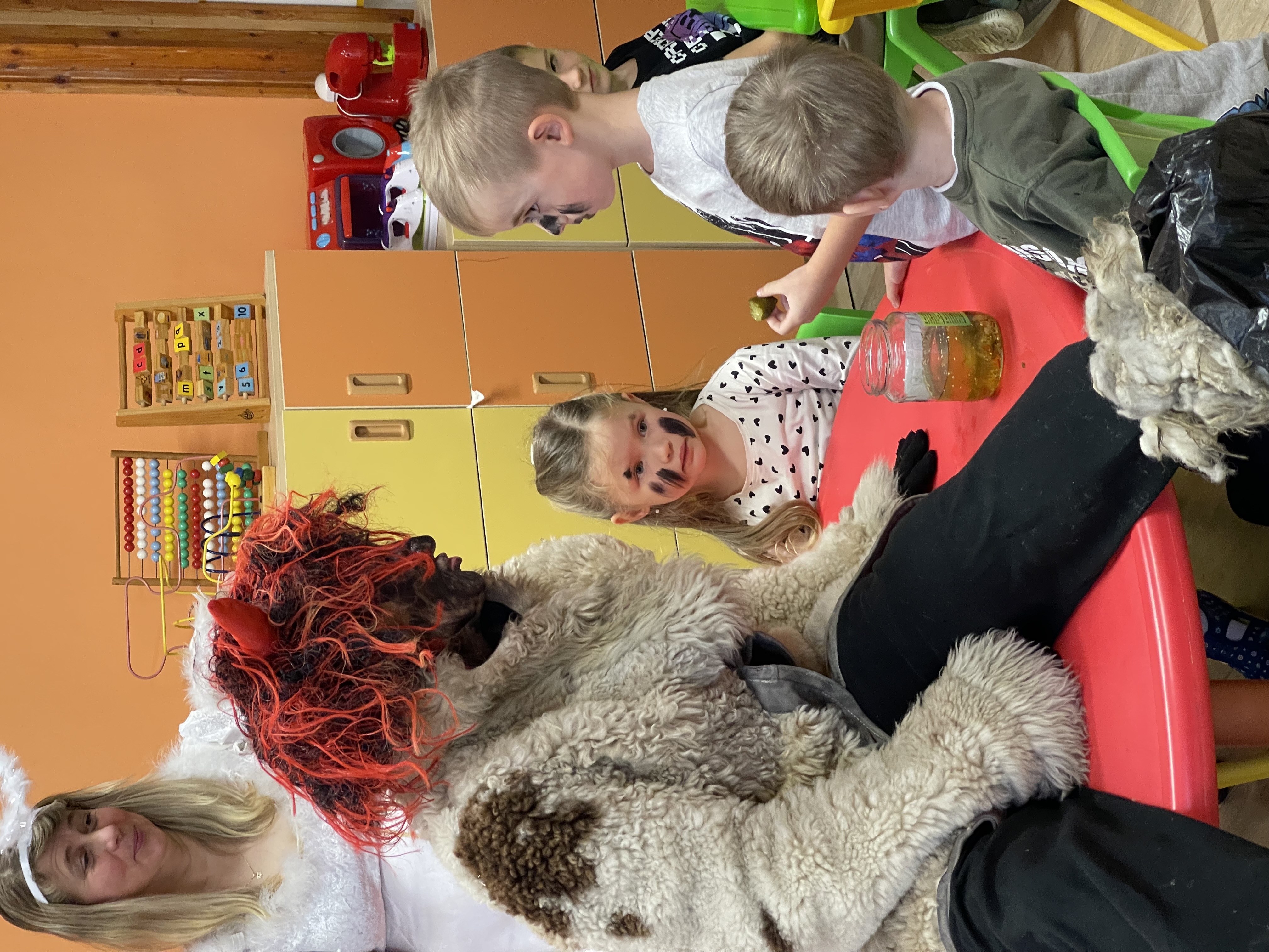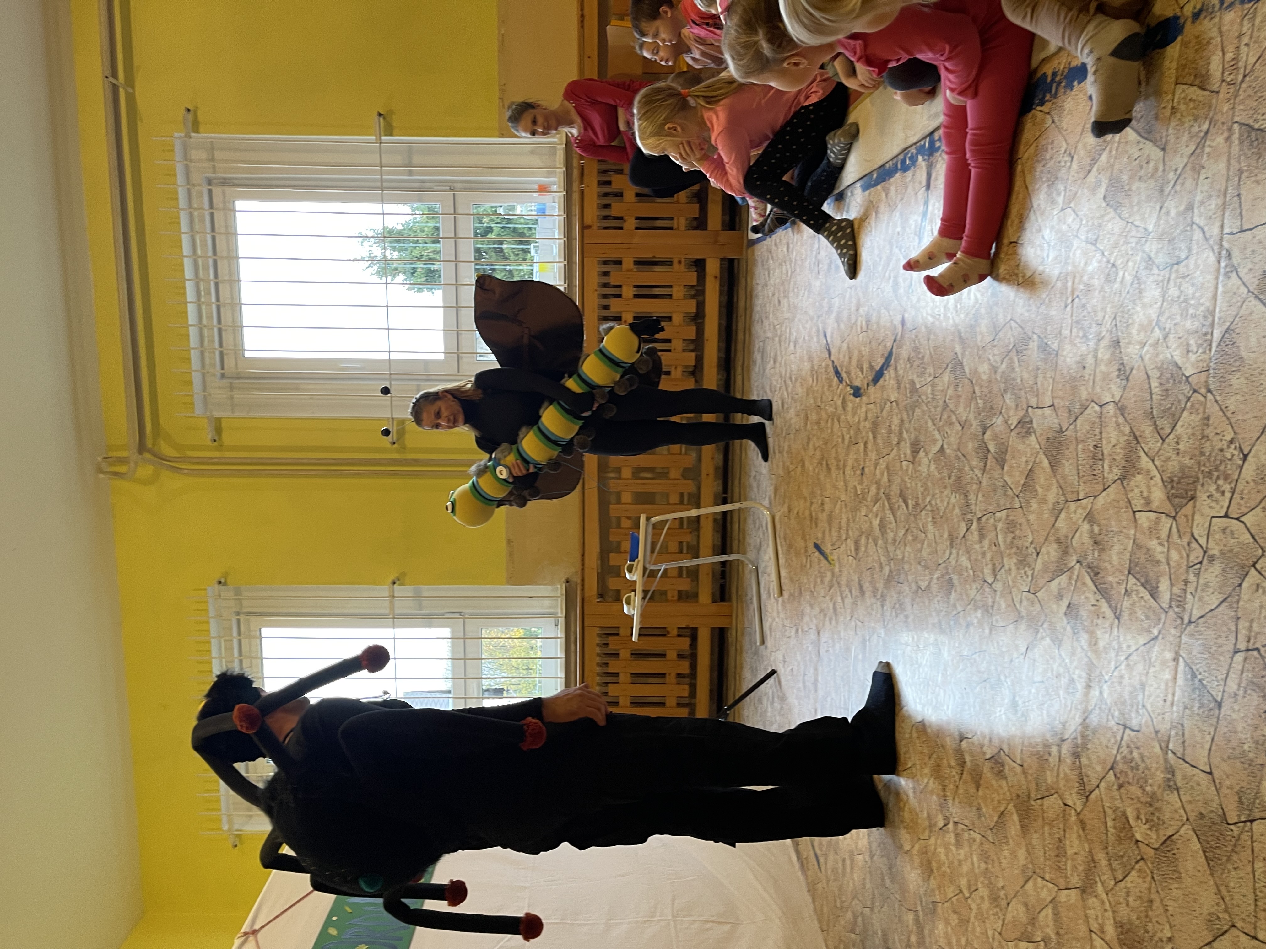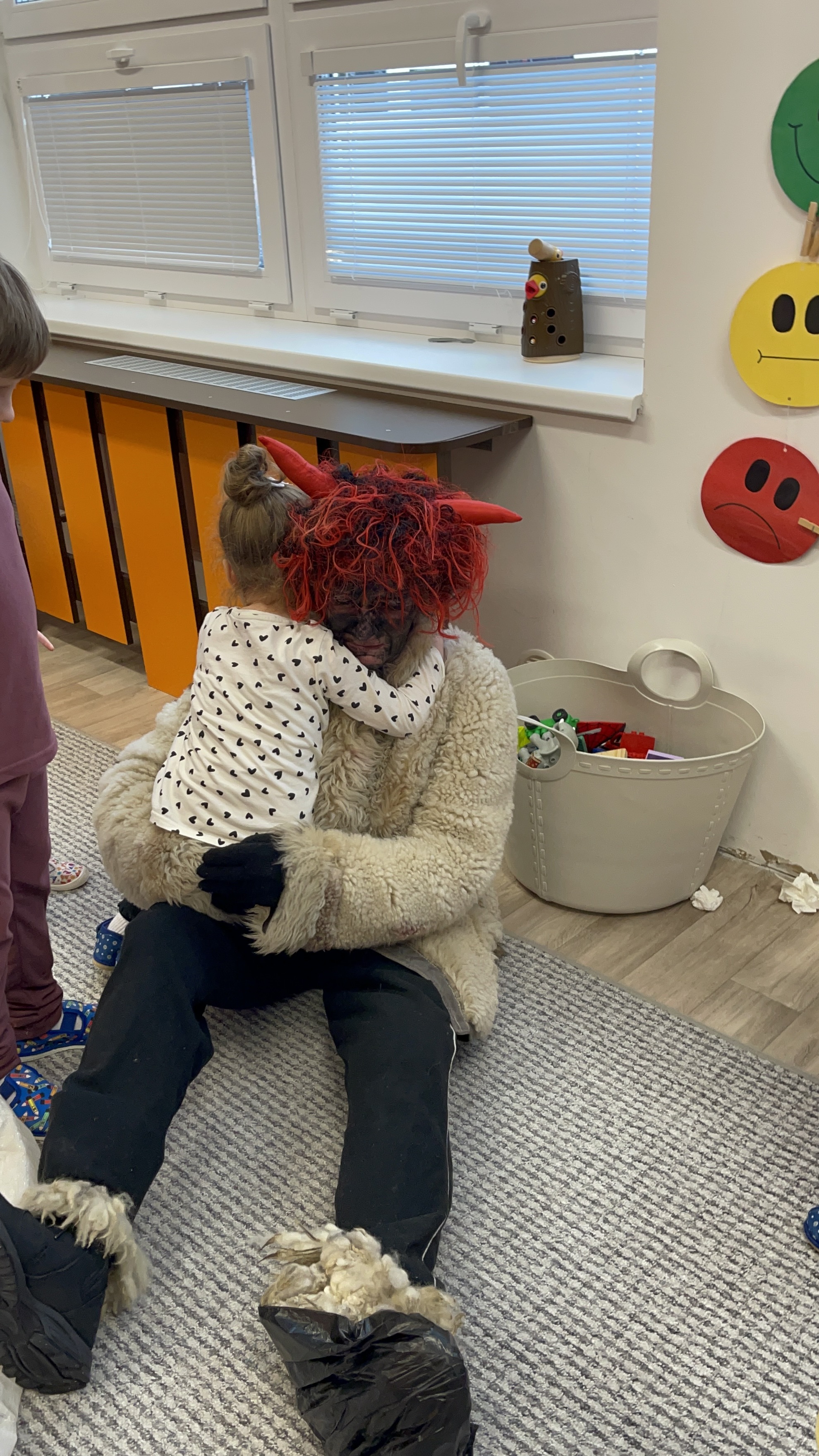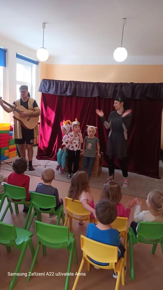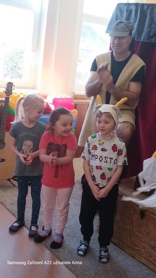 Ve středu 29.3.2023 k nám do školky zavítal pan Pohoda s jeho pohádkou "O kůzlátkách a vlku Františkovi"
