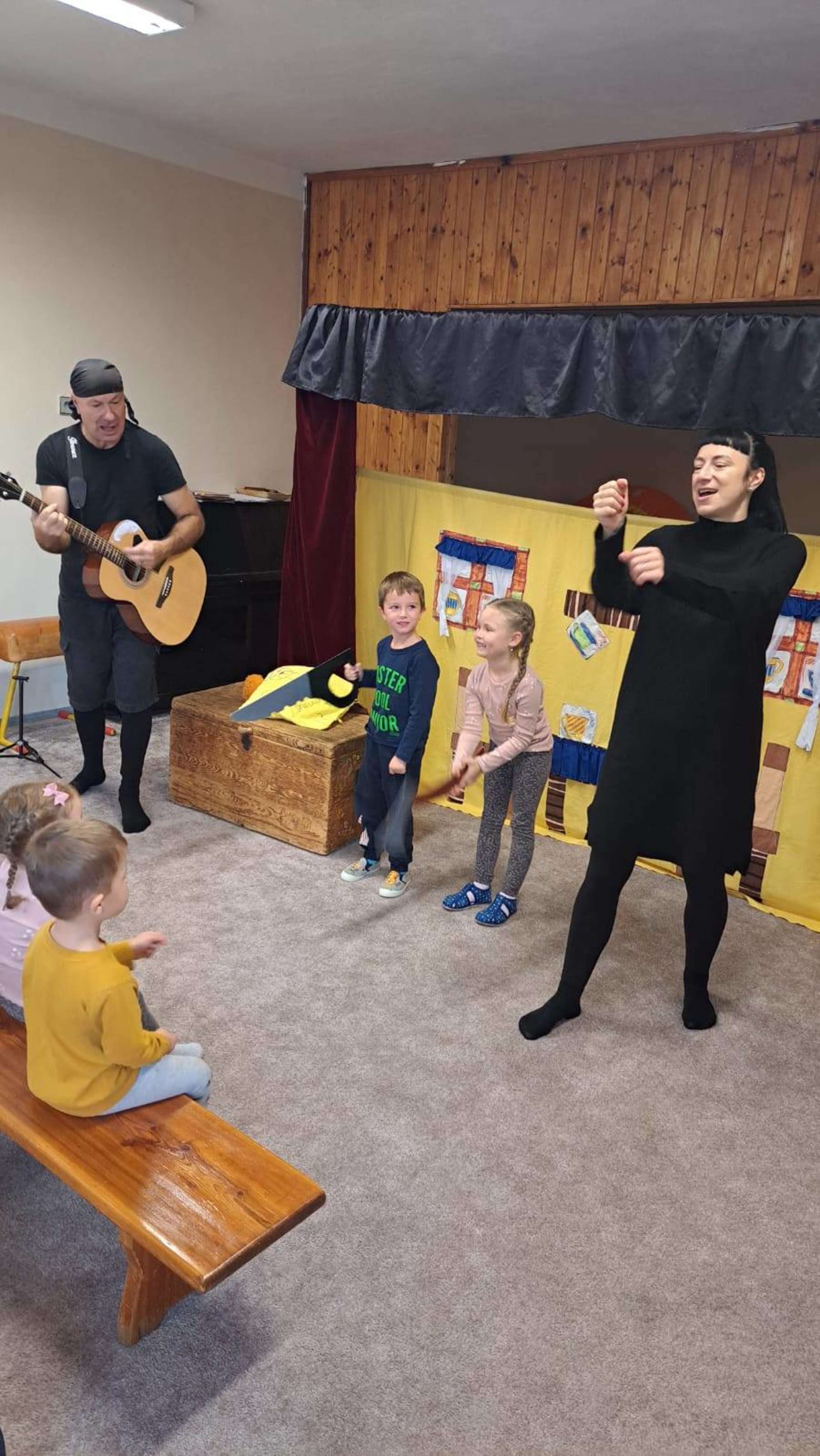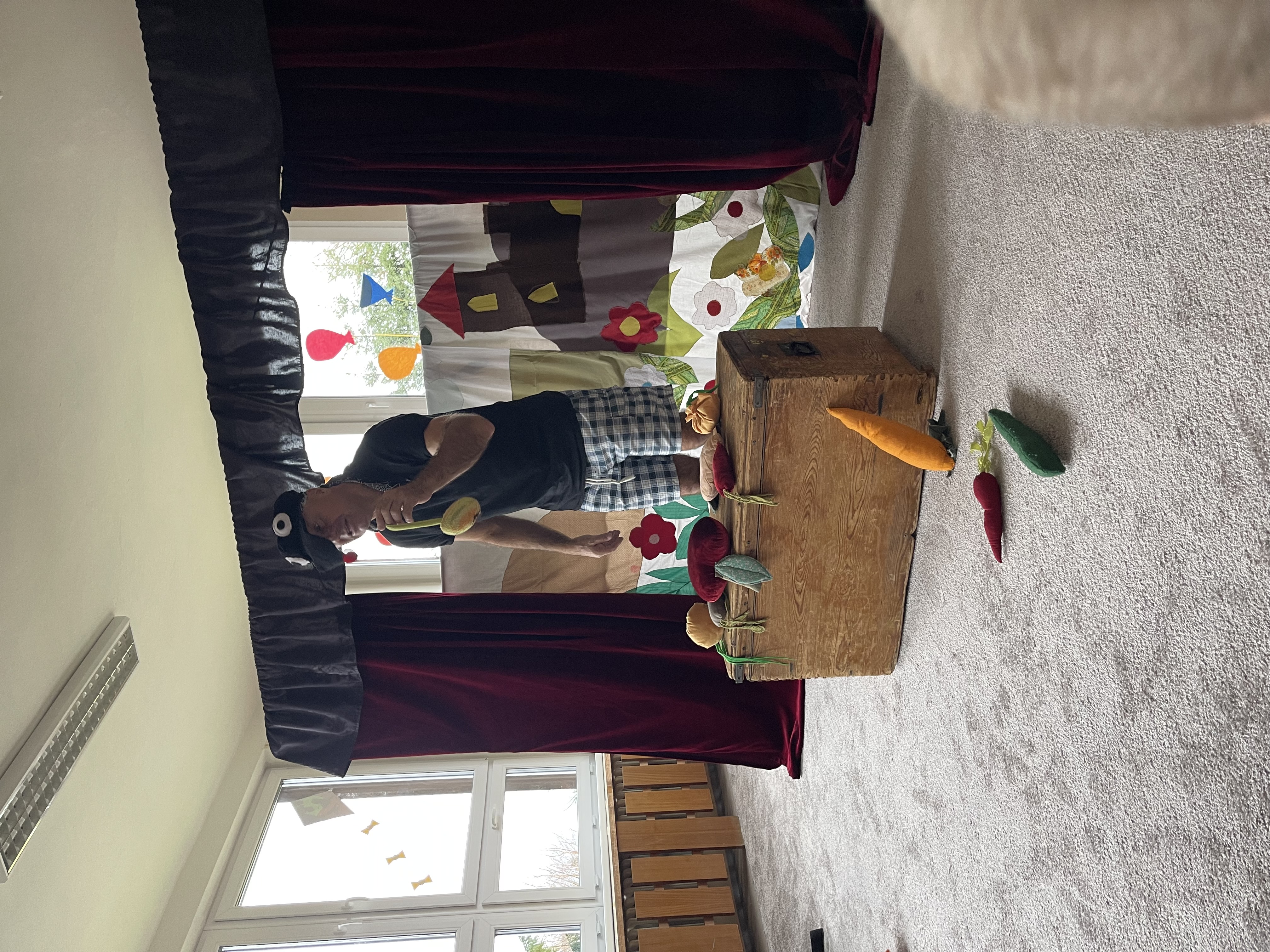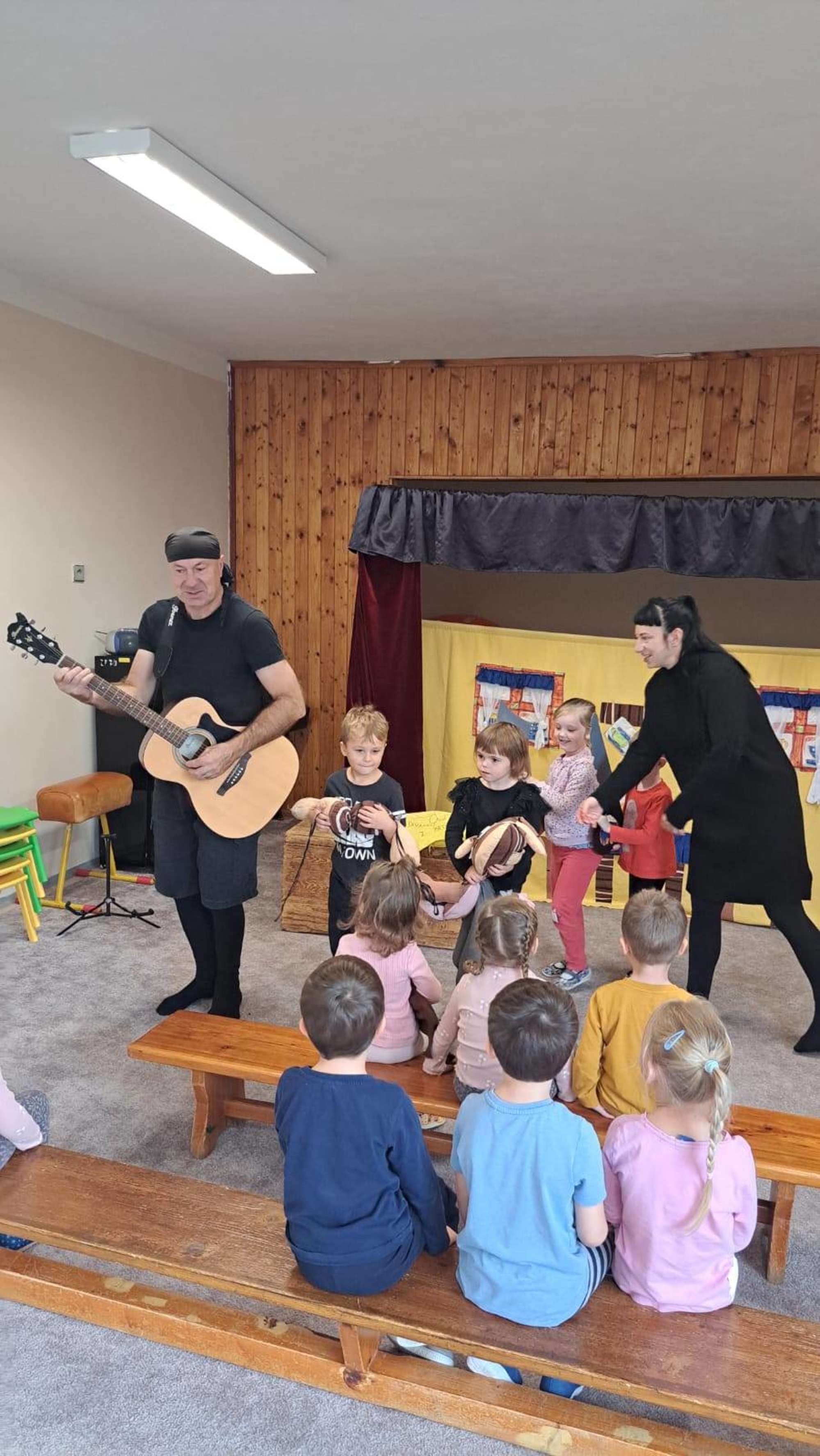 Ve středu 29.3.2023 k nám do školky zavítal pan Pohoda s jeho pohádkou "O kůzlátkách a vlku Františkovi"
