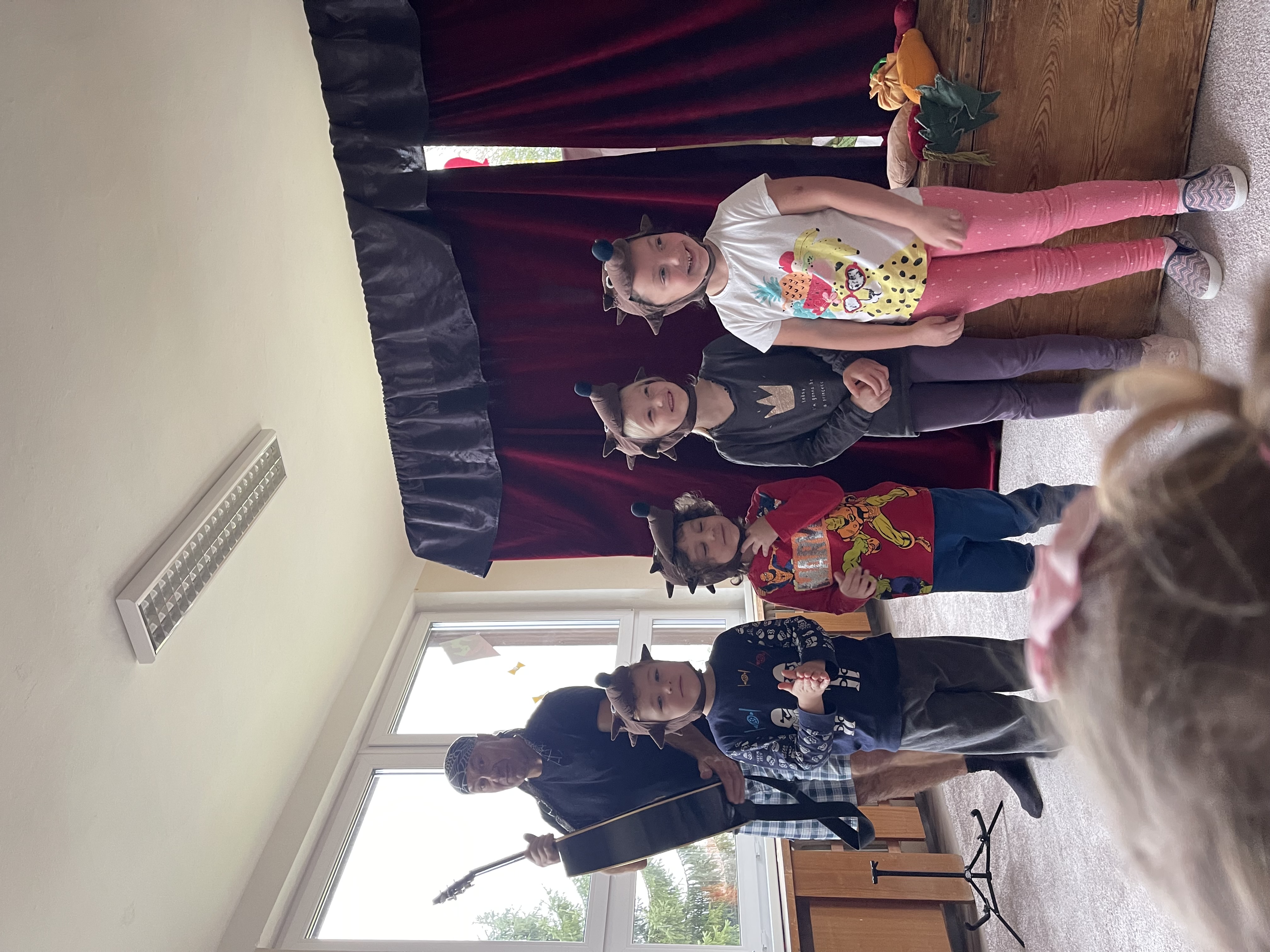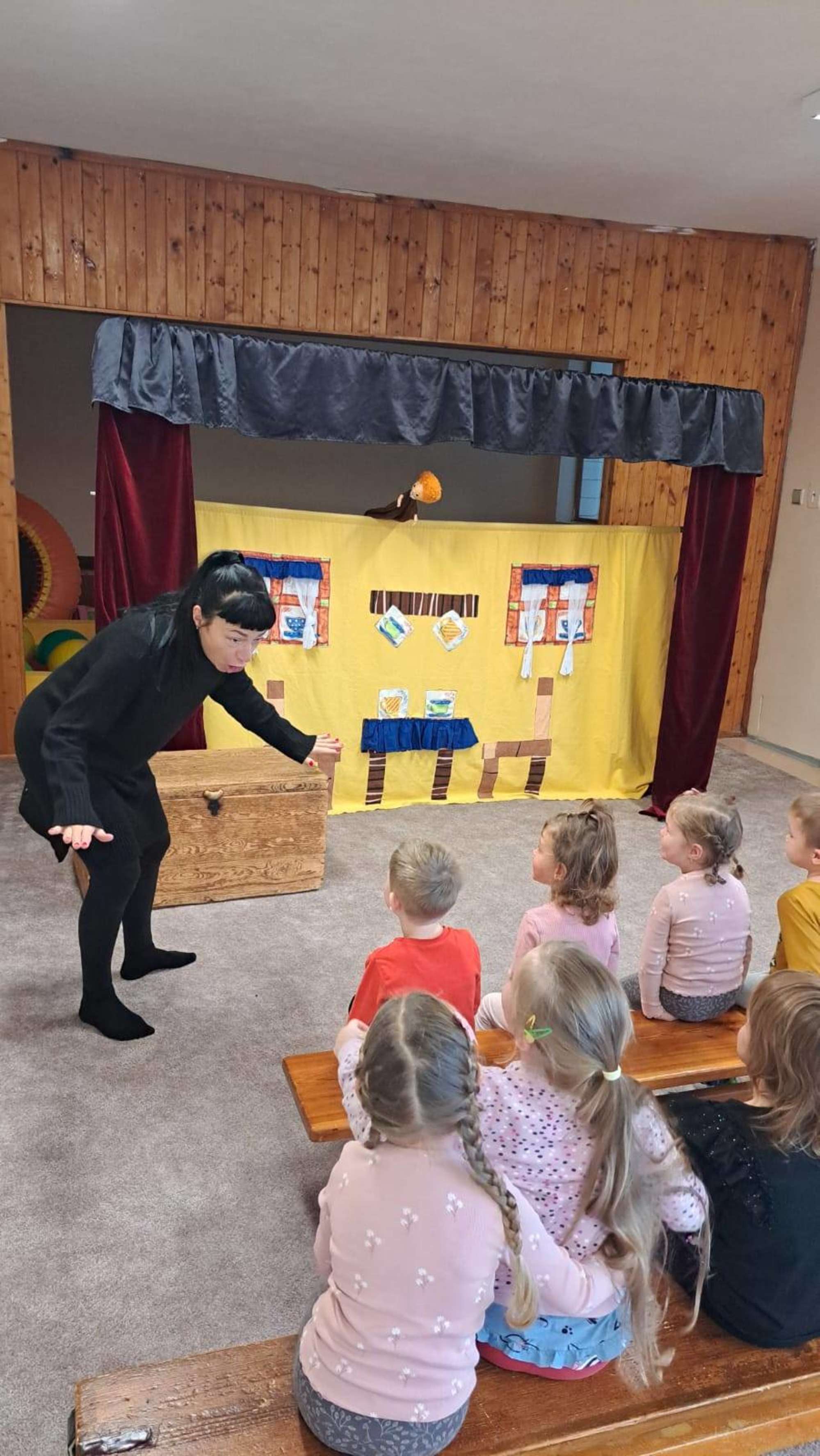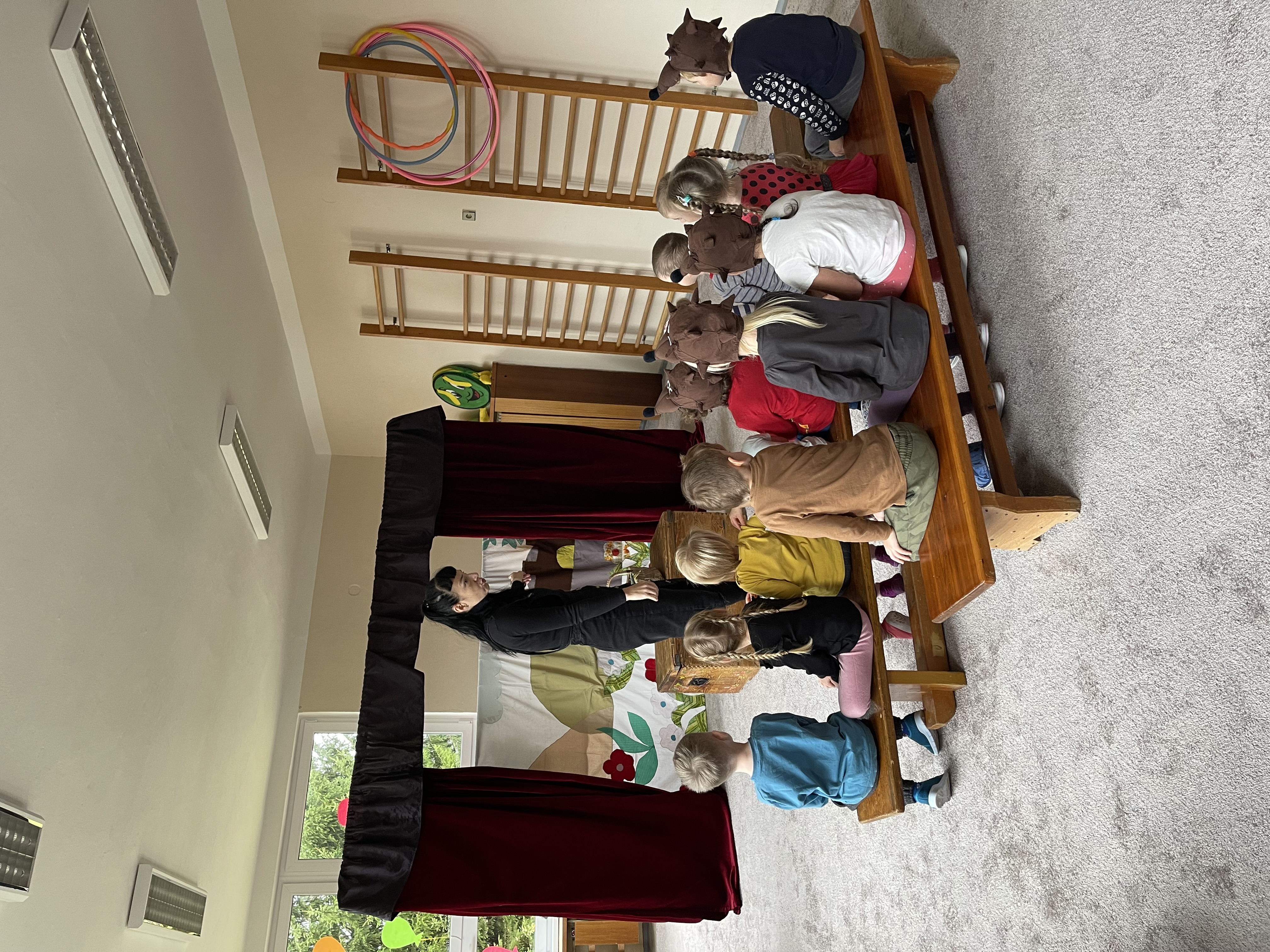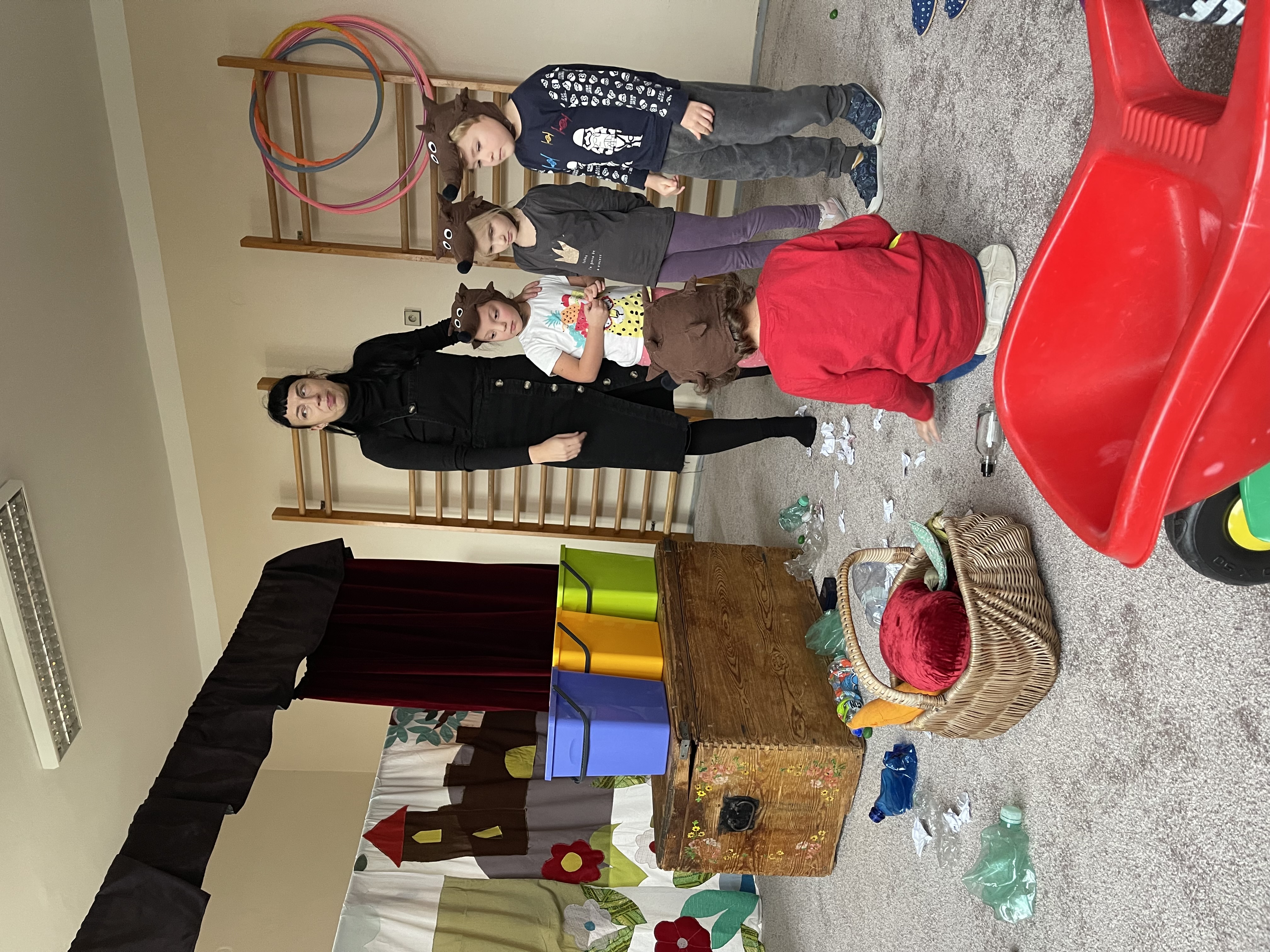 Ve středu 29.3.2023 k nám do školky zavítal pan Pohoda s jeho pohádkou "O kůzlátkách a vlku Františkovi"