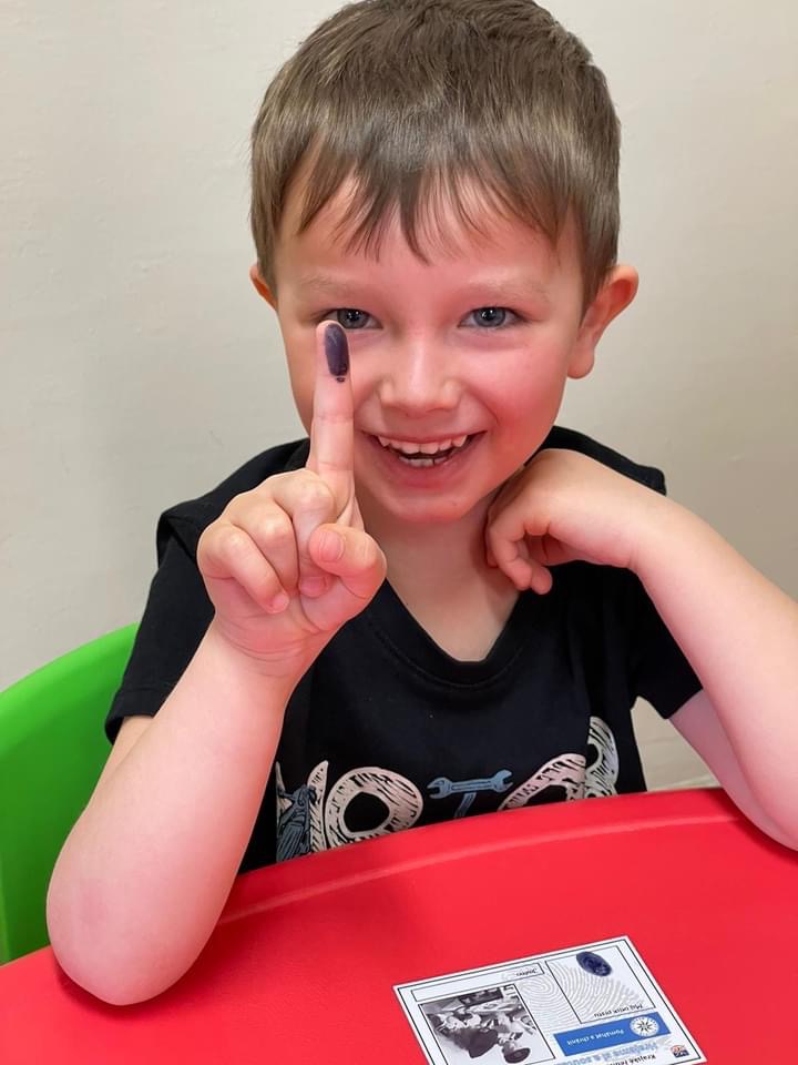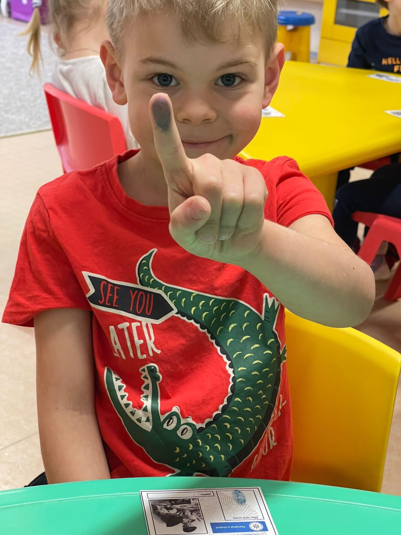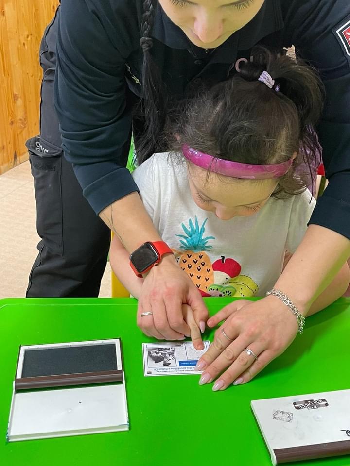 zahráli jsme si hru a zároveň jsme si s dětmi zkusili jak se asi obtiskávají prsty ,když policie chytí nějakého nezbedníka.