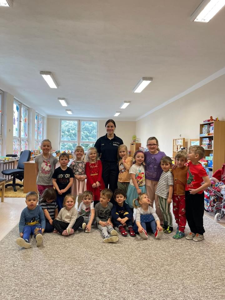 21.4.2023 naší mateřskou školku navštívila paní policistka s besedou na téma "Vlastní bezpečí"
