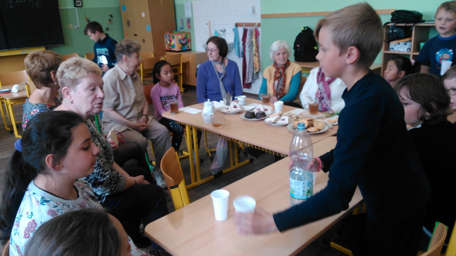 Blíží se konec školního roku a je třeba ještě jednou v tomto školním roce s družinou potěšit babičky a dědečky v DD Mariánská. Protože počasí přálo, vše se odehrávalo venku. Tentokrát jsme si pro seniory s dětmi připravily sportovní odpoledne. Bylo několik stanovišť ( kuželky, hod míčkem do obruče, házení míčků do bedny, hod do dálky apod.). Přestože byla většina seniorů odkázána na invalidní vozíky nebo chodítka, soutěžili s radostí a elánem. Žáčci je pak vzali i na krátkou projížďku, povídali si s nimi. Odpolední kávička, limonáda, dezert velmi všem chutnaly po takových sportovních výkonech. Naše děti se opět předvedly v tom nejlepším! Celé odpoledne probíhalo v krásném souznění dvou tak věkově odlišných generací. S příjemným, ale trošku i smutným pocitem jsme se vrátili zpět do družiny.